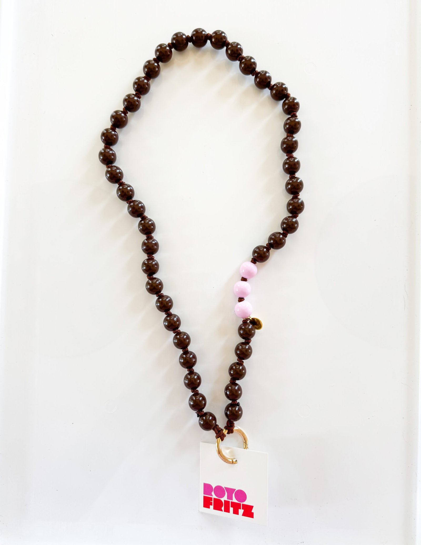 - Colgante/Llavero con cuentas de madera y cuerda de Nylon muy resistente.