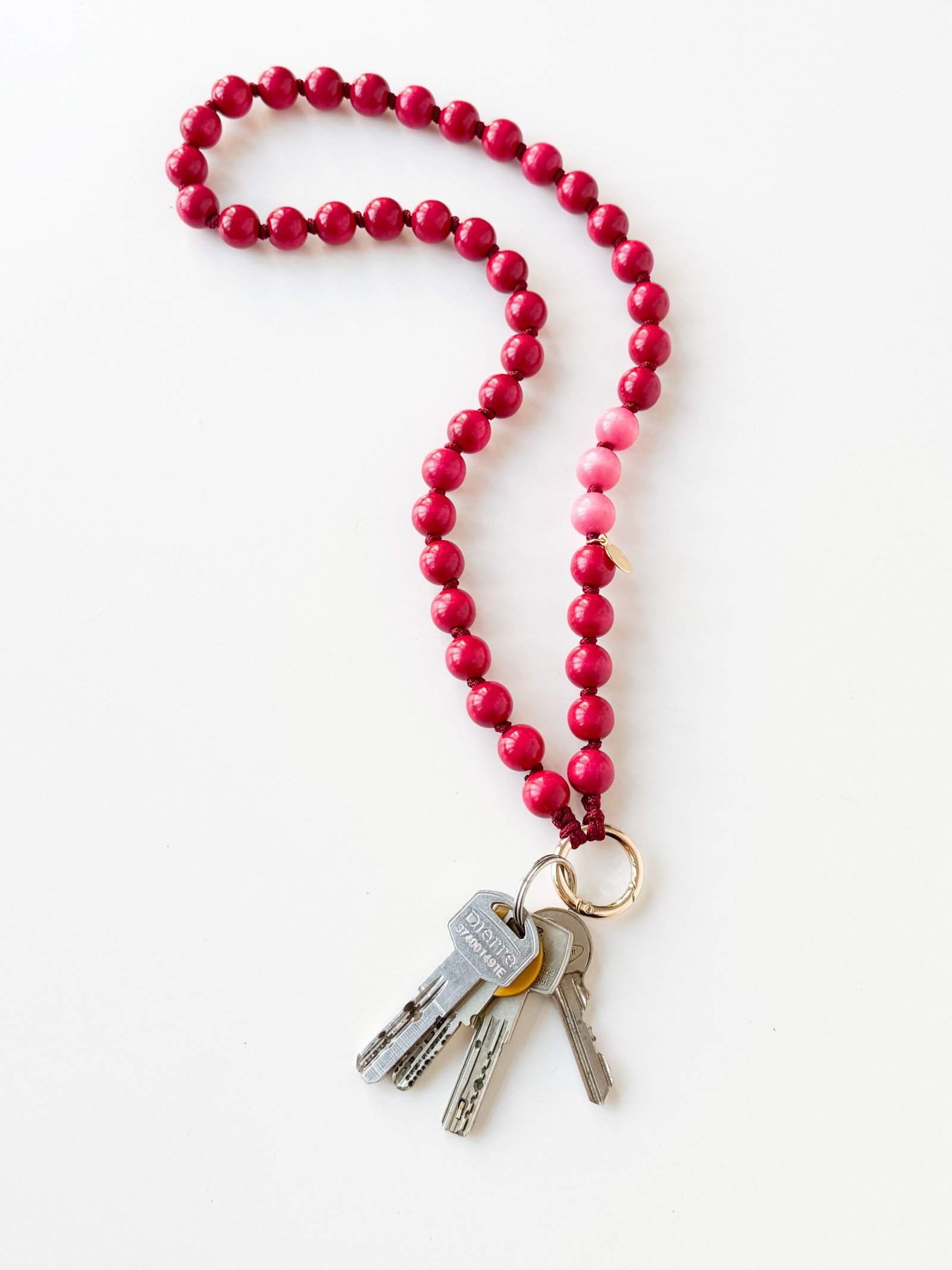 - Colgante/Llavero con cuentas de madera y cuerda de Nylon muy resistente.