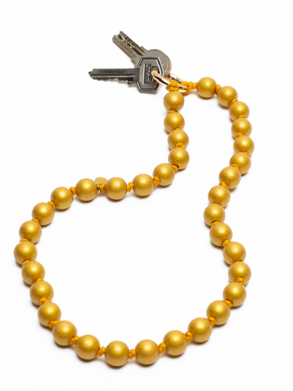 - Colgante/Llavero con cuentas de madera y cuerda de Nylon muy resistente.