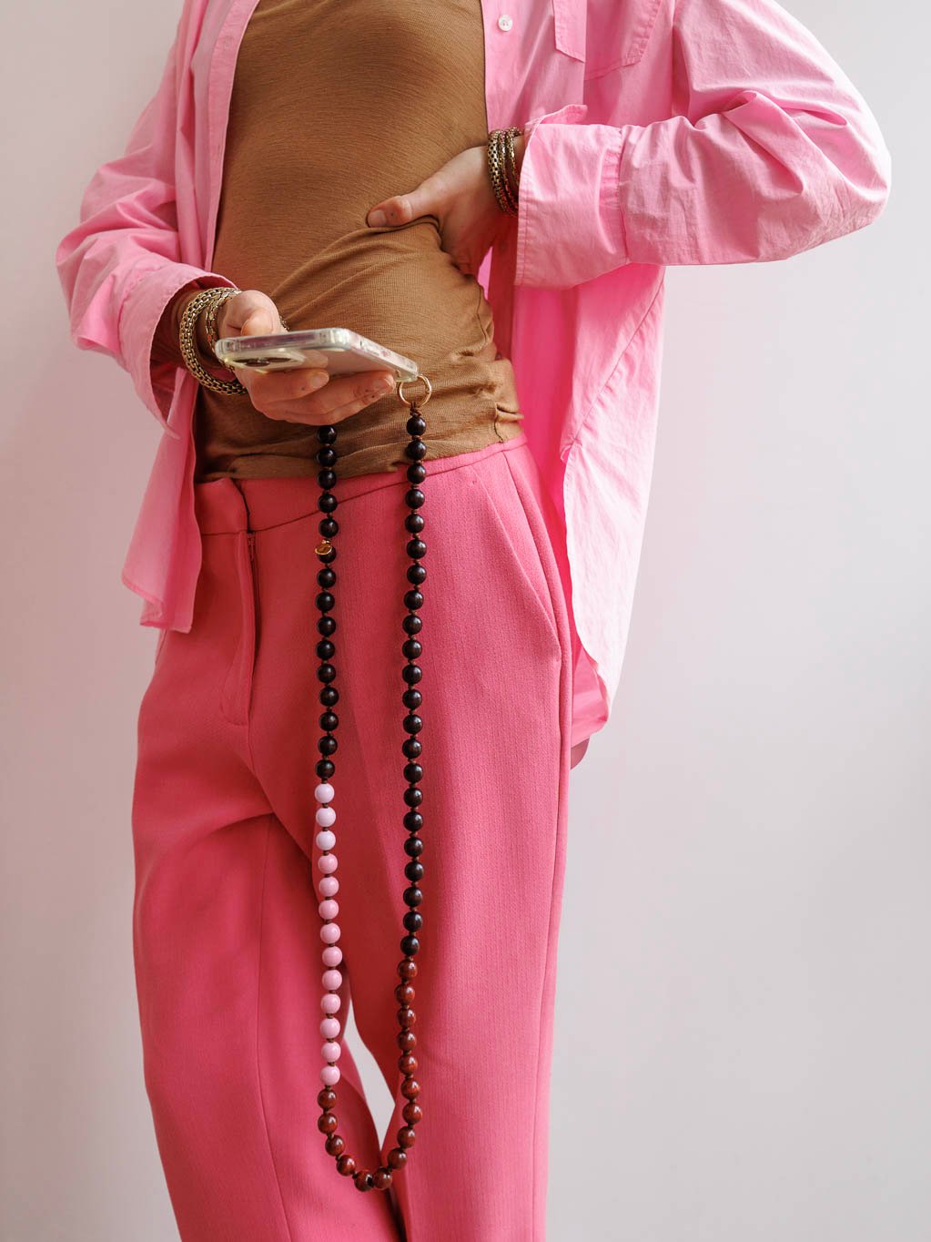 - Colgante para móvil hecho con cuentas de madera y cuerda de Nylon muy resistente.