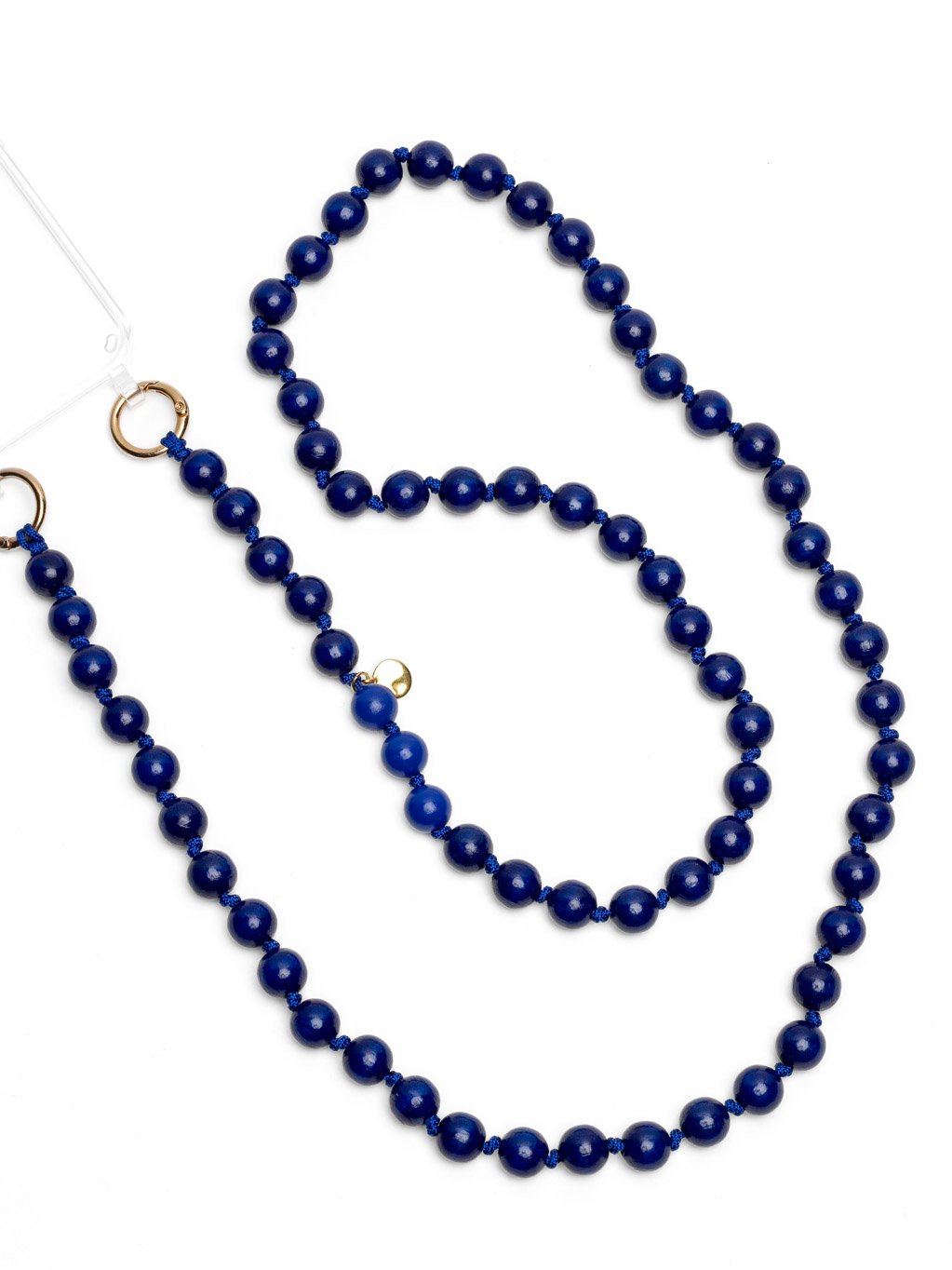 - Argollas mosquetón metálicas en color dorado.