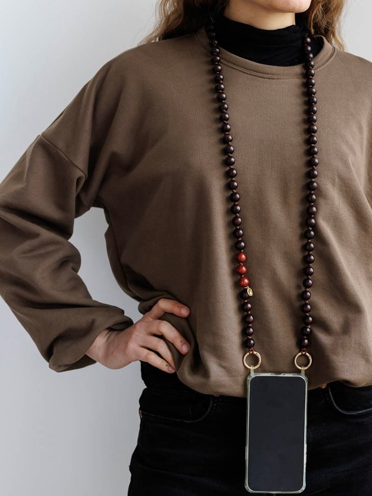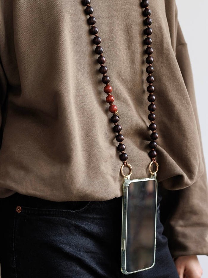 - Colgante para móvil hecho con cuentas de madera y cuerda de Nylon muy resistente.